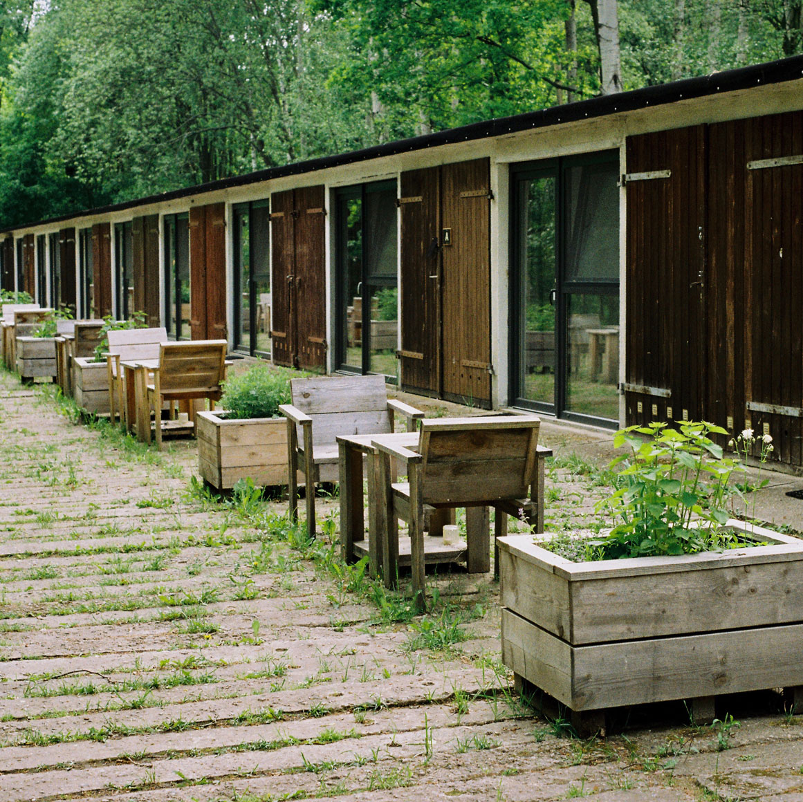 - Former garages converted into cozy GDR inspired bungalows and ready made adventure-style tents